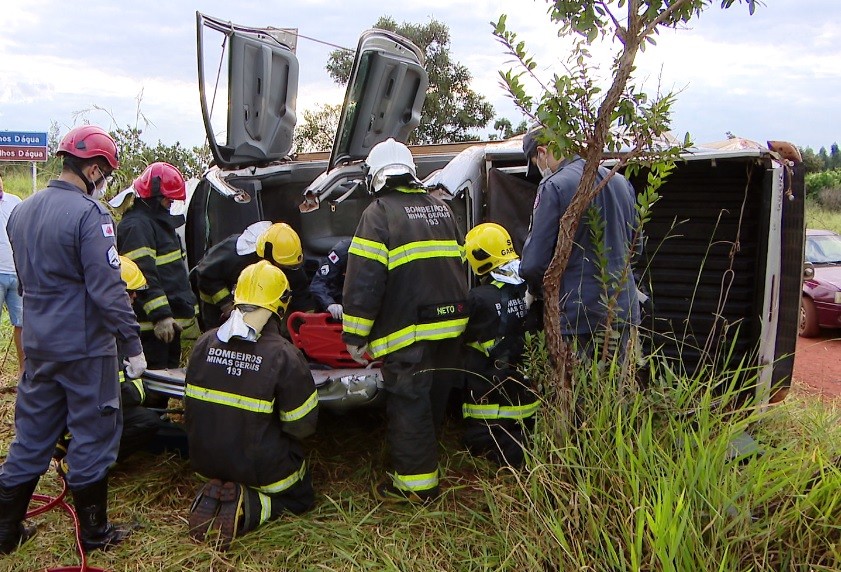 Casal e filha foram socorridos pelos bombeiros e levados para a UAI Tibery nesta terça (1º). Acidente foi registrado no Km 600 da BR-365 em Uberlândia Reprodução/TV Integração Uma caminhonete capotou na tarde desta terça-feira (1ª) na BR-365, em Uberlândia. De acordo com a Polícia Rodoviária Federal (PRF), o acidente ocorreu no Km 600, próximo ao Rio Araguari. De acordo com o Corpo de Bombeiros, um casal e a filha deles, que não tiveram as idades divulgadas, estavam no veículo e foram socorridos com ferimentos leves para a Unidade de Atendimento Integrado (UAI) do Bairro Tibery. Não há informações sobre o que causou o capotamento. Os bombeiros informaram que a mulher e a filha dela ficaram presas às ferragens da caminhonete e, para retirá-las, foi necessário um trabalho de cerca de uma hora. O trânsito no local não foi interditado.