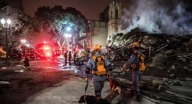 Veja as imagens do incêndio que causou o desabamento do prédio: