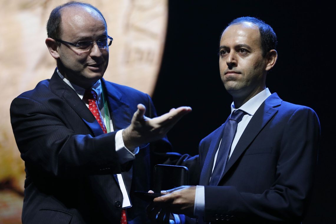 Prêmio do professor Caucher Birkar, que é um refugiado curdo que vive no Reino Unido, foi levado poucos minutos após ter sido entregue dura...